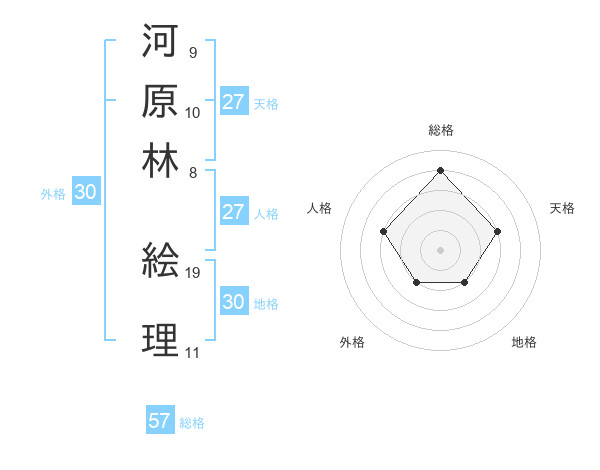 河原林 絵理さんの総格は57画の4点!