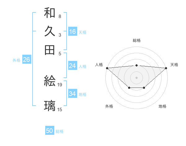 和久田 絵璃さんを姓名の画数から五運を鑑定