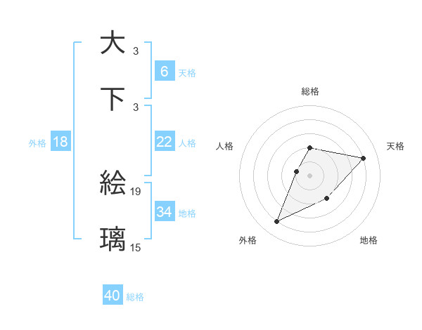大下 絵璃さんを姓名の画数から五運を鑑定