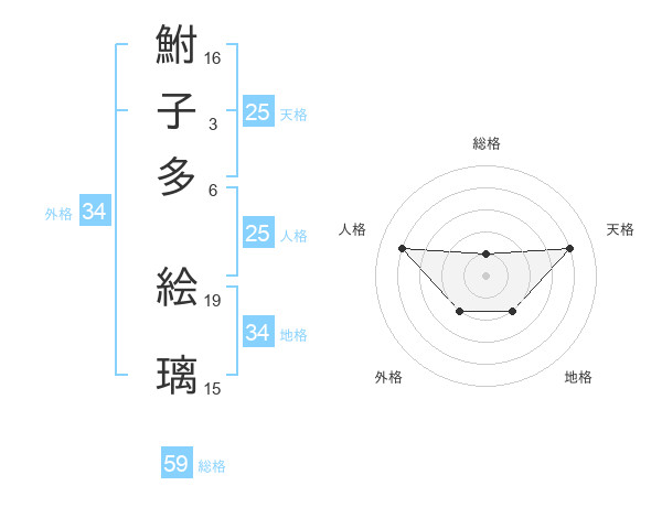 鮒子多 絵璃さんを姓名の画数から五運を鑑定