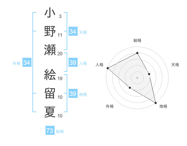 小野瀬 絵留夏さんを姓名の画数から五運を鑑定