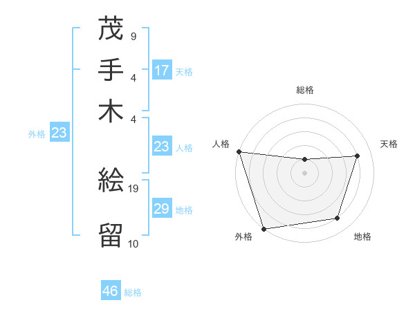茂手木 絵留さんを姓名の画数から五運を鑑定