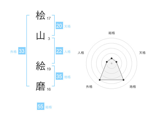 桧山 絵磨さんの総格は55画の1点!