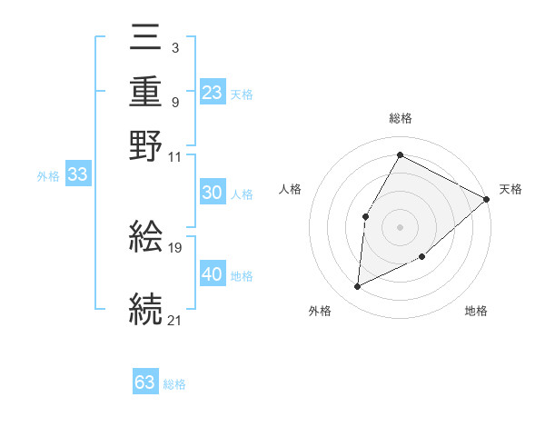三重野 絵続さんの総格は63画の4点