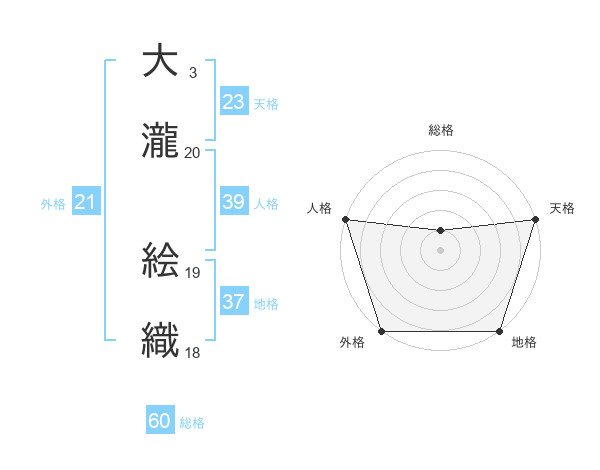 大瀧 絵織さんを姓名の画数から五運を鑑定