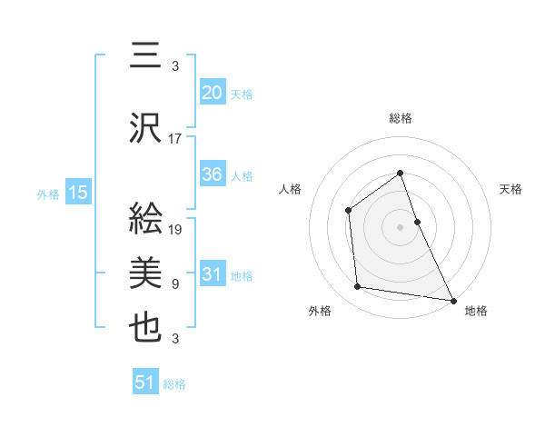 三沢 絵美也さんを姓名の画数から五運を鑑定