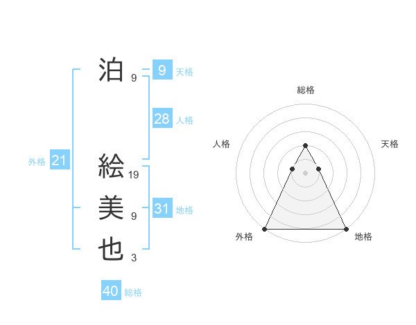 泊 絵美也さんの地格は31画の5点!