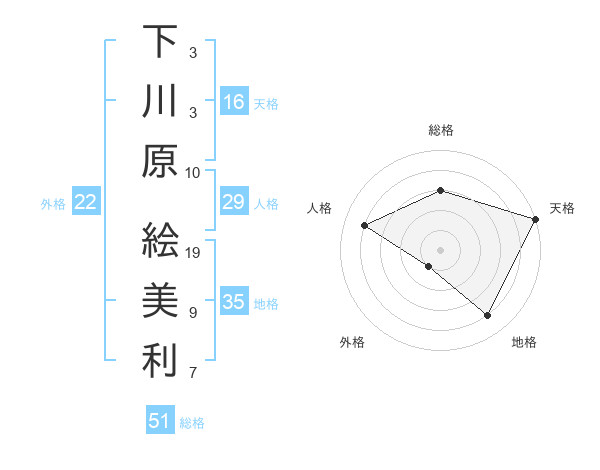 下川原 絵美利さんを姓名の画数から五運を鑑定
