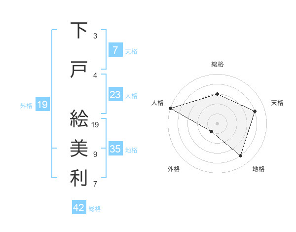 下戸 絵美利さんを姓名の画数から五運を鑑定
