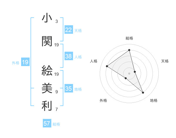 小関 絵美利さんの総格は57画の4点!