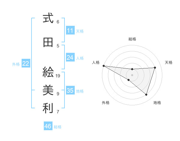 式田 絵美利さんの地格は35画の4点!