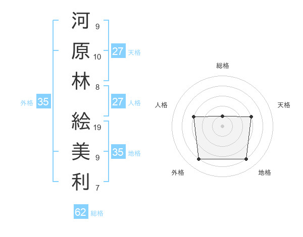 河原林 絵美利さんを姓名の画数から五運を鑑定