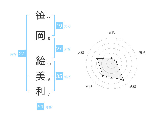 笹岡 絵美利さんの外格は27画の3点!