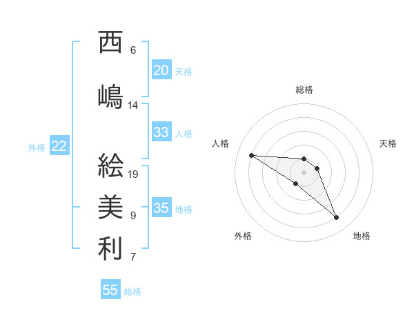 西嶋 絵美利さんを姓名の画数から五運を鑑定