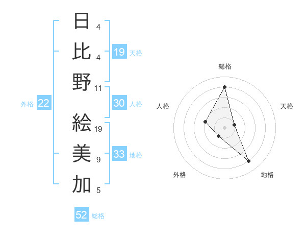 日比野 絵美加さんを姓名の画数から五運を鑑定