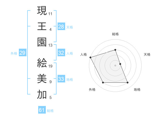 現王園 絵美加さんを姓名の画数から五運を鑑定