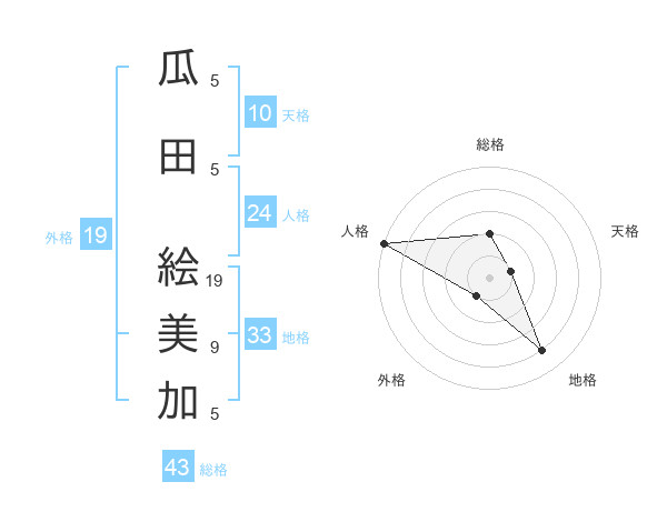 瓜田 絵美加さんの総格は43画の2点!
