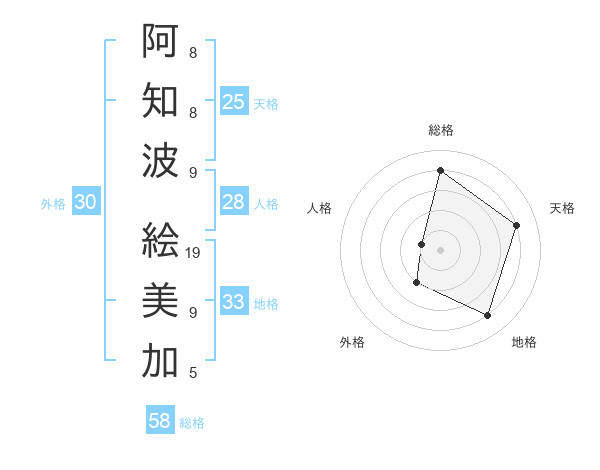 阿知波 絵美加さんを姓名の画数から五運を鑑定