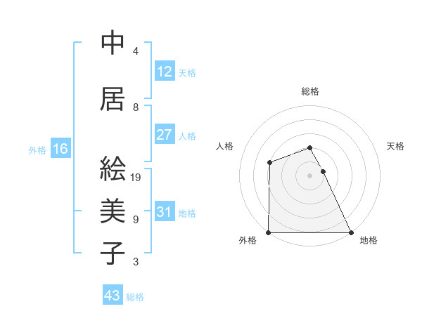 中居 絵美子さんを姓名の画数から五運を鑑定