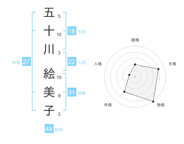 五十川 絵美子さんを姓名の画数から五運を鑑定