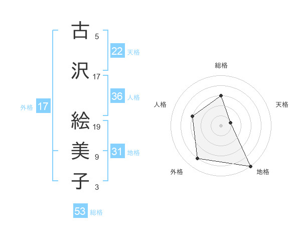 古沢 絵美子さんを姓名の画数から五運を鑑定