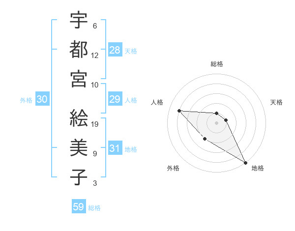 宇都宮 絵美子さんを姓名の画数から五運を鑑定