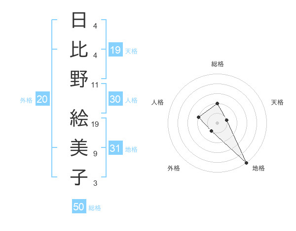 日比野 絵美子さんを姓名の画数から五運を鑑定