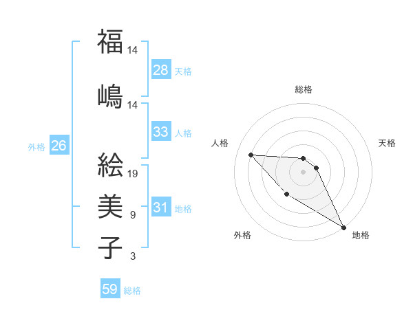 福嶋 絵美子さんを姓名の画数から五運を鑑定