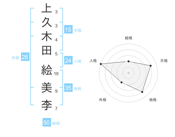 上久木田 絵美李さんを姓名の画数から五運を鑑定