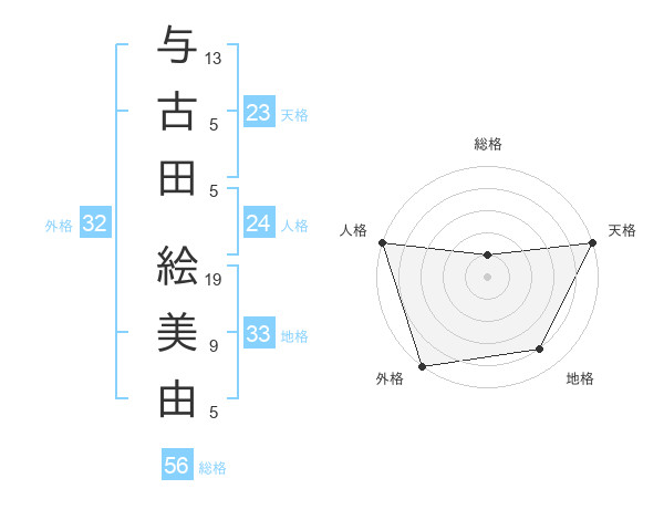 与古田 絵美由さんを姓名の画数から五運を鑑定