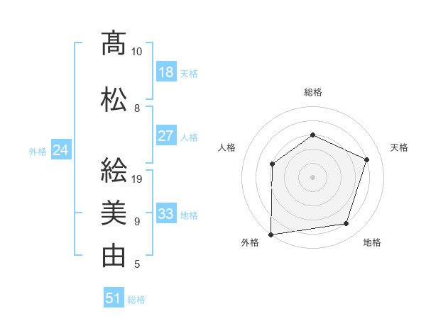 髙松 絵美由さんを姓名の画数から五運を鑑定