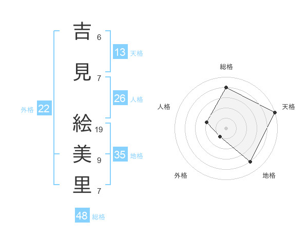 吉見 絵美里さんの天格は13画の5点!