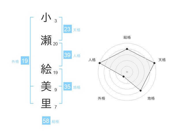 小瀬 絵美里さんの総格は58画の4点!
