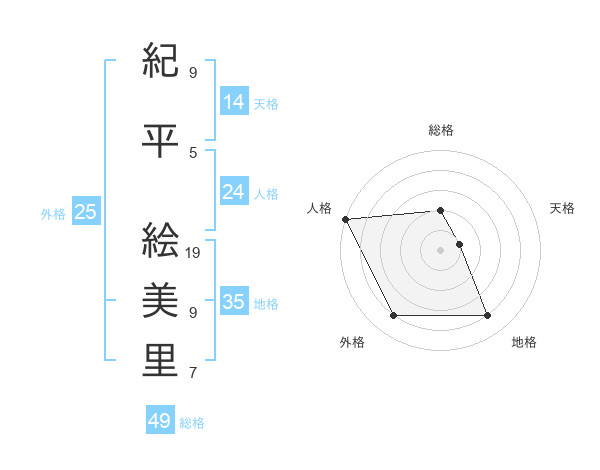紀平 絵美里さんの天格は14画の1点!