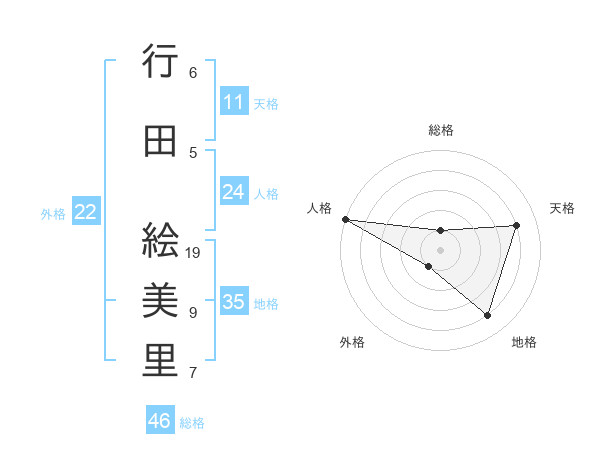 行田 絵美里さんの地格は35画の4点