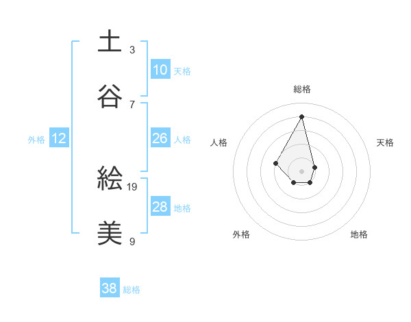 土谷 絵美さんの総格は38画の4点!