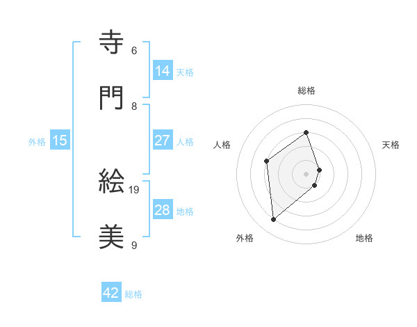 寺門 絵美さんを姓名の画数から五運を鑑定
