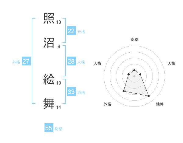 照沼 絵舞さんの総格は55画の1点!