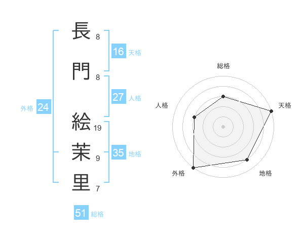 長門 絵茉里さんを姓名の画数から五運を鑑定