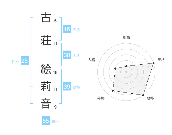 古荘 絵莉音さんの天格は16画の5点!