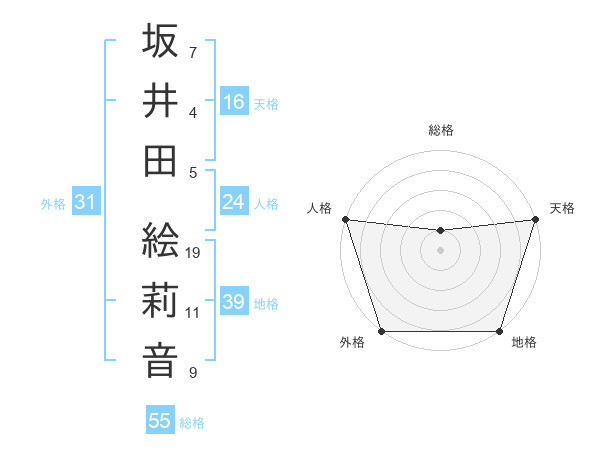 坂井田 絵莉音さんを姓名の画数から五運を鑑定