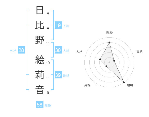 日比野 絵莉音さんを姓名の画数から五運を鑑定