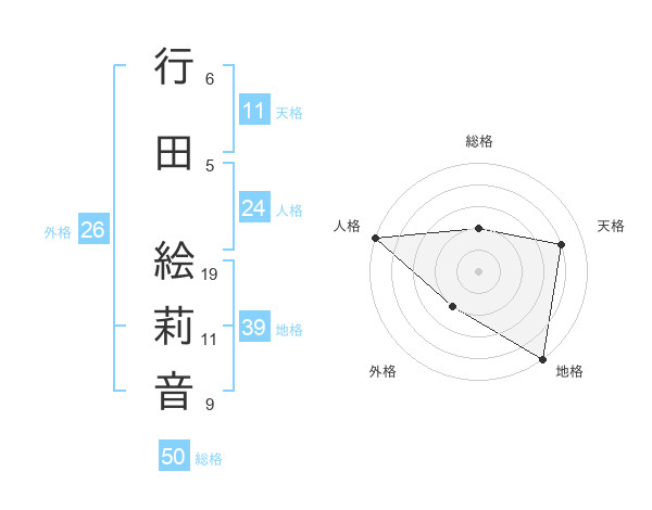 行田 絵莉音さんの総格は50画の2点