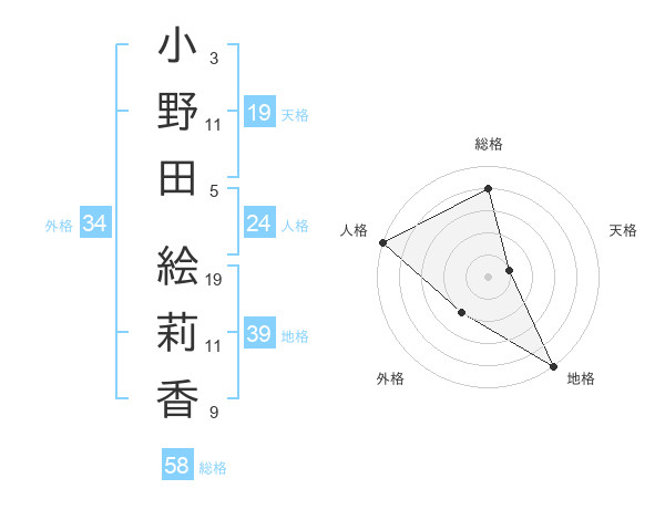 小野田 絵莉香さんを姓名の画数から五運を鑑定