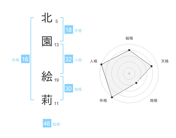北園 絵莉さんの総格は48画の4点!