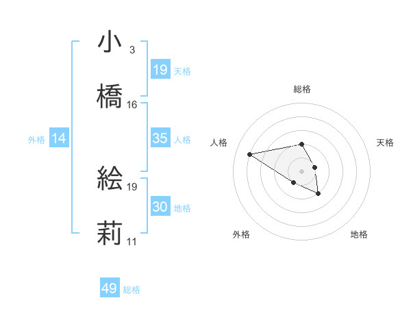 小橋 絵莉さんを姓名の画数から五運を鑑定