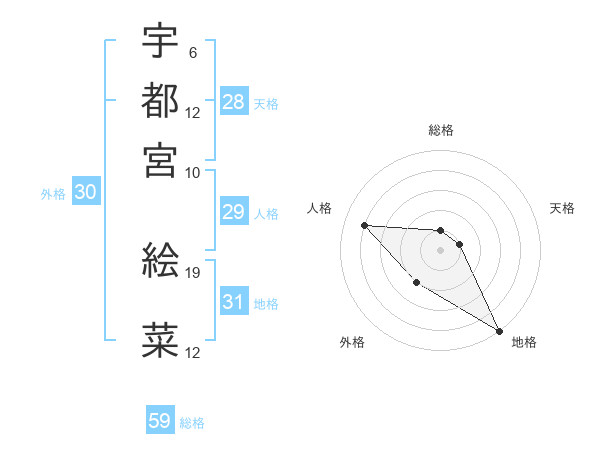 宇都宮 絵菜さんの総格は59画の1点!