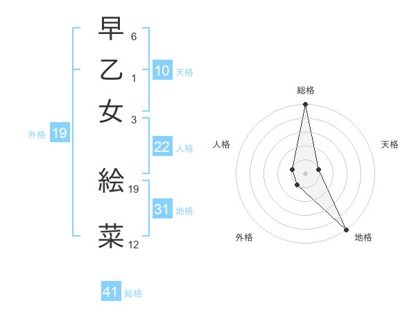 早乙女 絵菜さんを姓名の画数から五運を鑑定