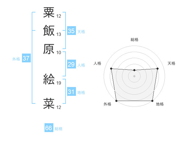 粟飯原 絵菜さんの総格は66画の1点!
