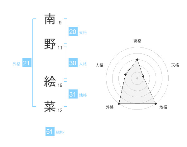 南野 絵菜さんを姓名の画数から五運を鑑定